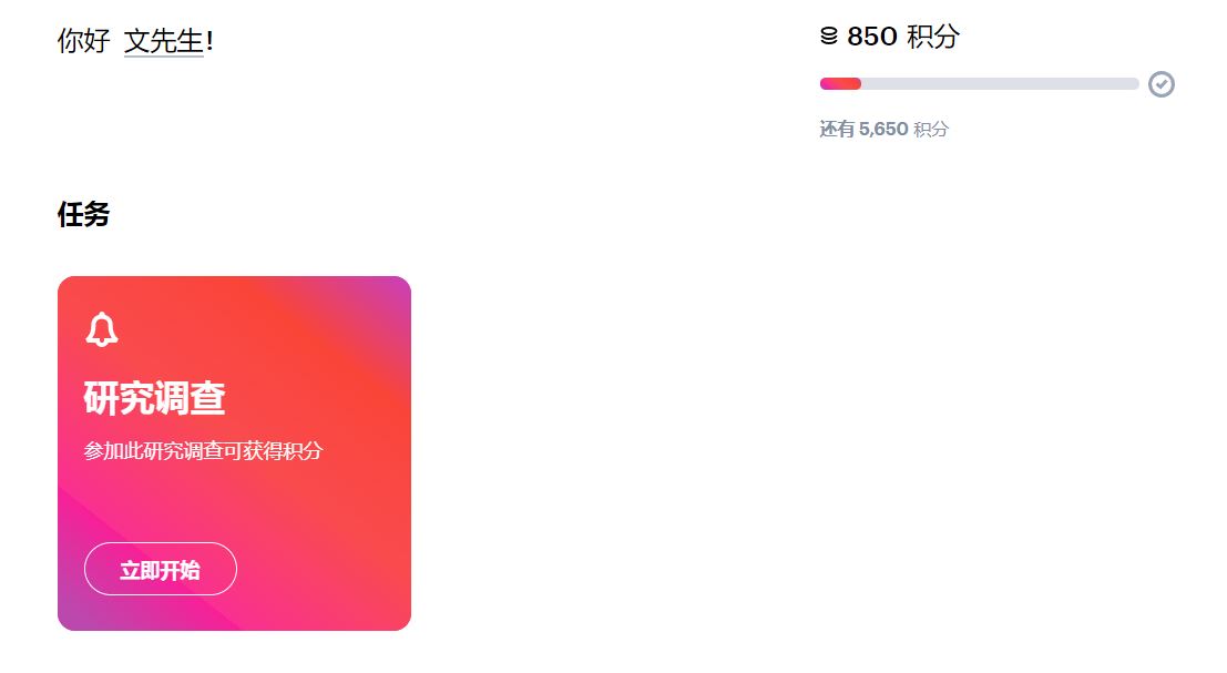 积分兑换:比例为100积分=1元。一般一份问卷1-6元。